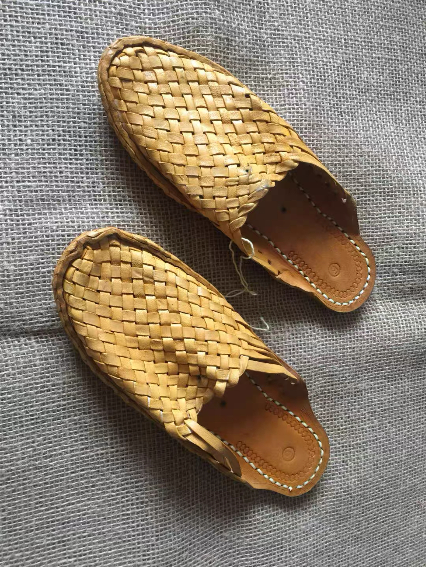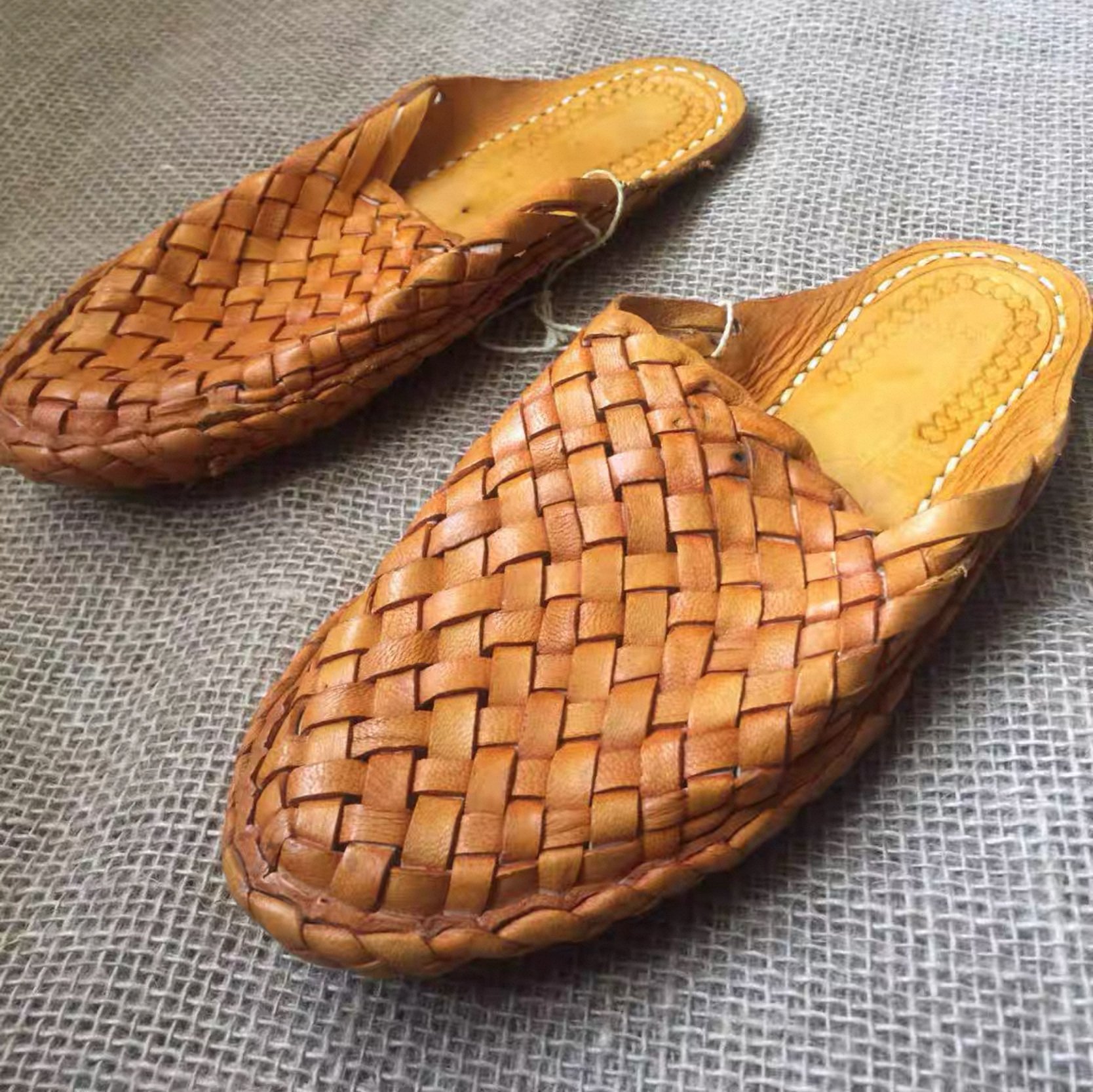 Indian handmade camel leather woven retro/ Hippie-style closed-toe flat sandals/ Unisex.